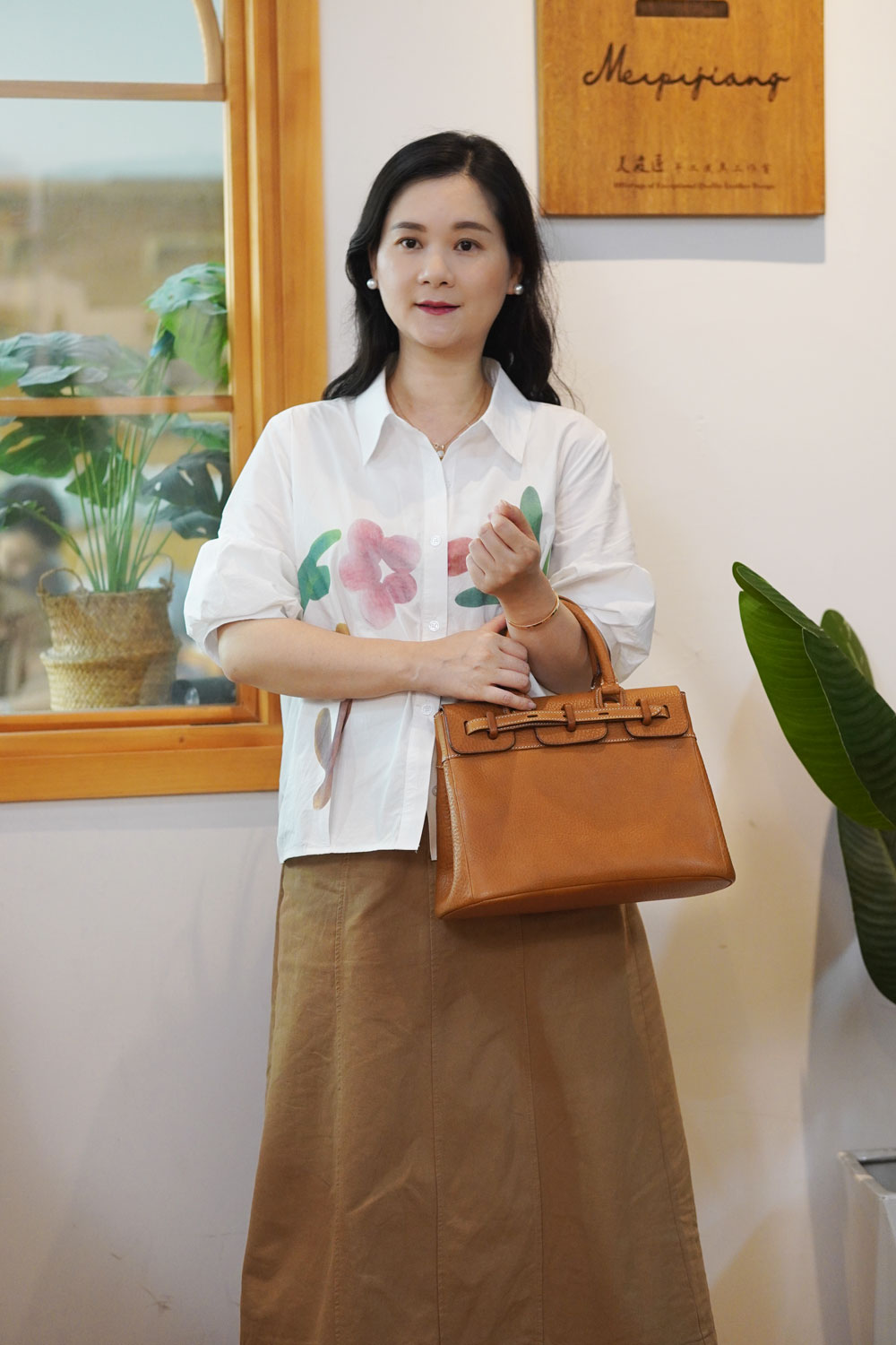 Made from vegetable-tanned leather with a timeless feel, this bag is Briefcase will become more lustrous with time. Treated with special techniques, the leather surface features natural and irregular textures, signifying traces of time. utilizing a jewelry-grade vacuum-electroplated manufacturing process that imparts a vintage feel. The buckles open and close in a second, offering convenience and security.