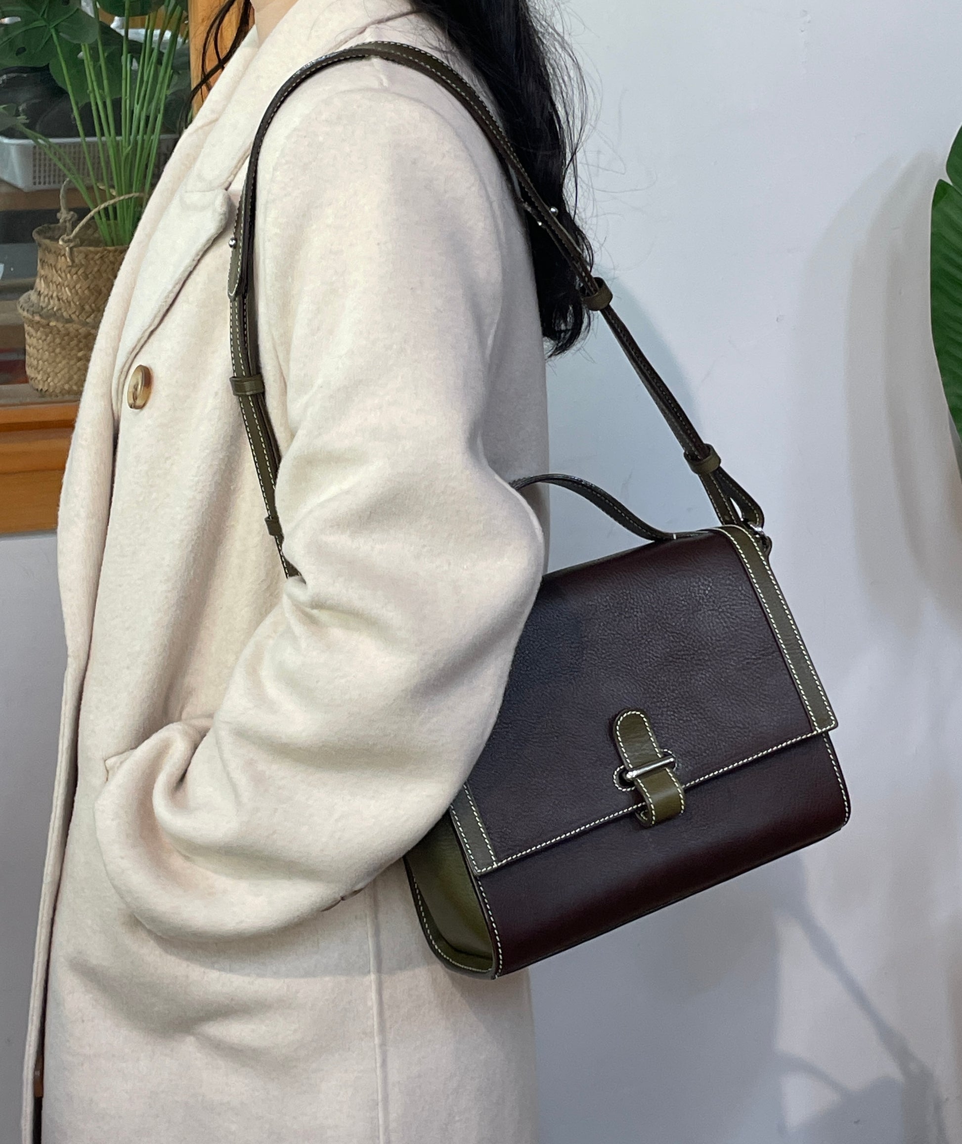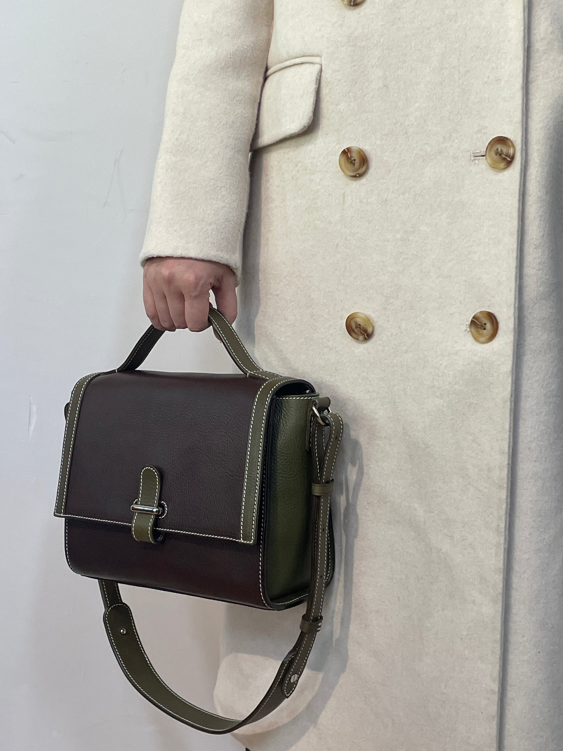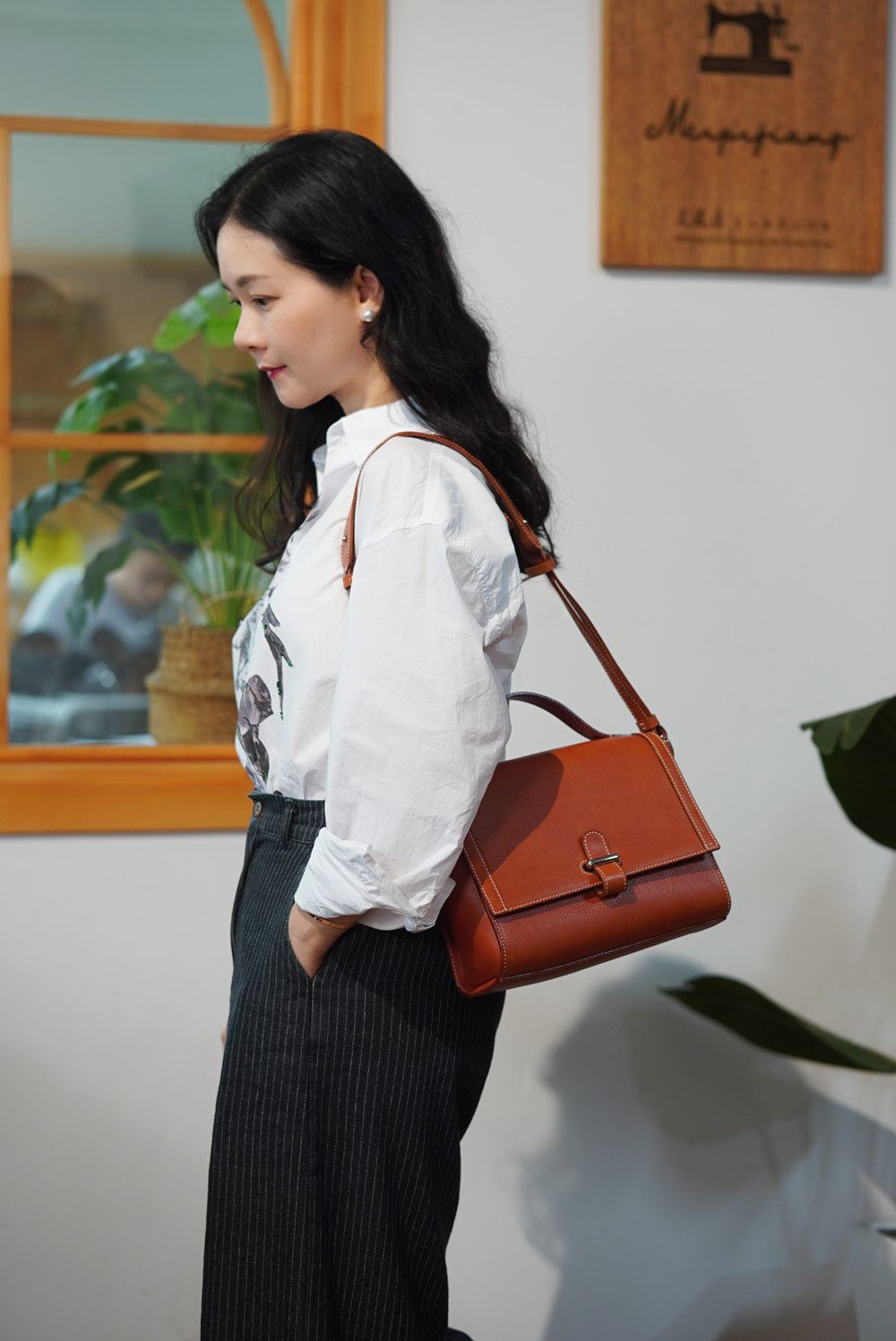 Made from vegetable-tanned leather with a timeless feel, this bag is Briefcase will become more lustrous with time. Treated with special techniques, the leather surface features natural and irregular textures, signifying traces of time. utilizing a jewelry-grade vacuum-electroplated manufacturing process that imparts a vintage feel. The buckles open and close in a second, offering convenience and security.