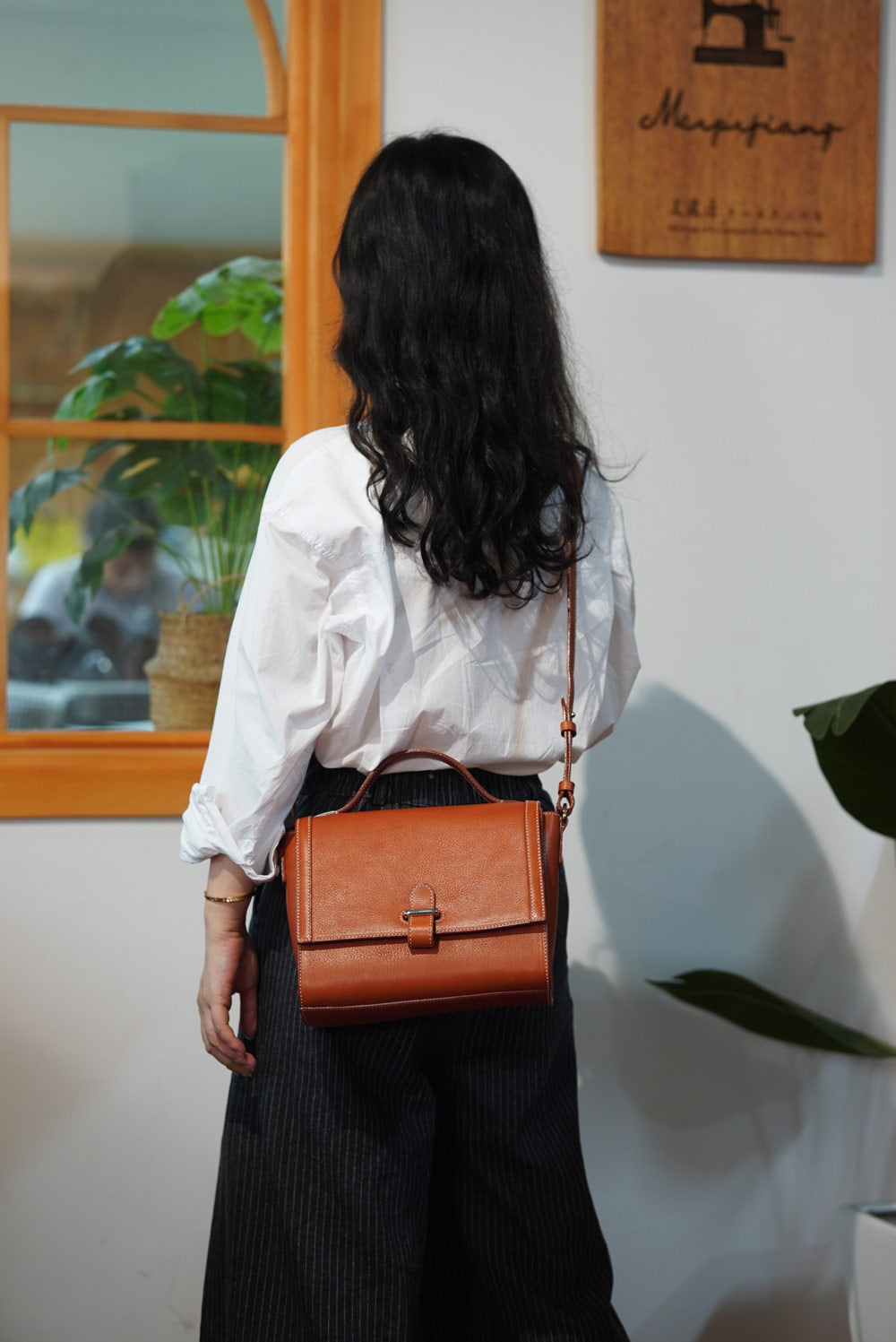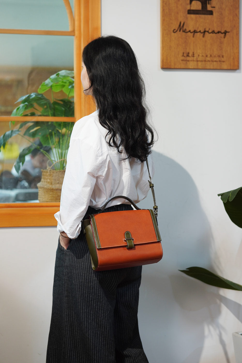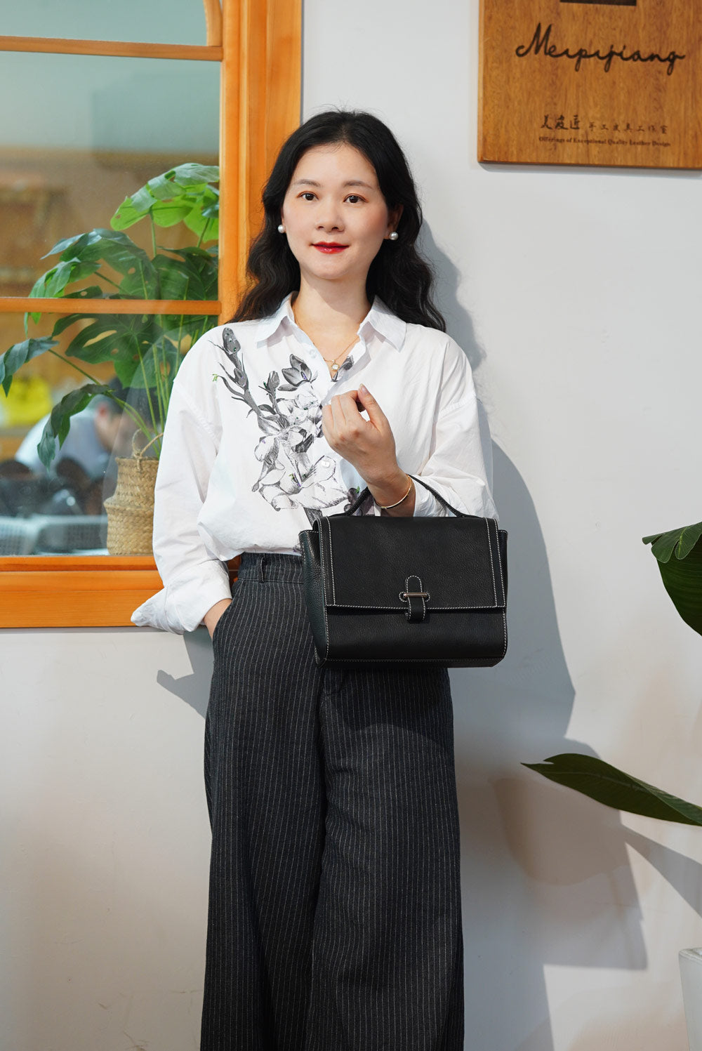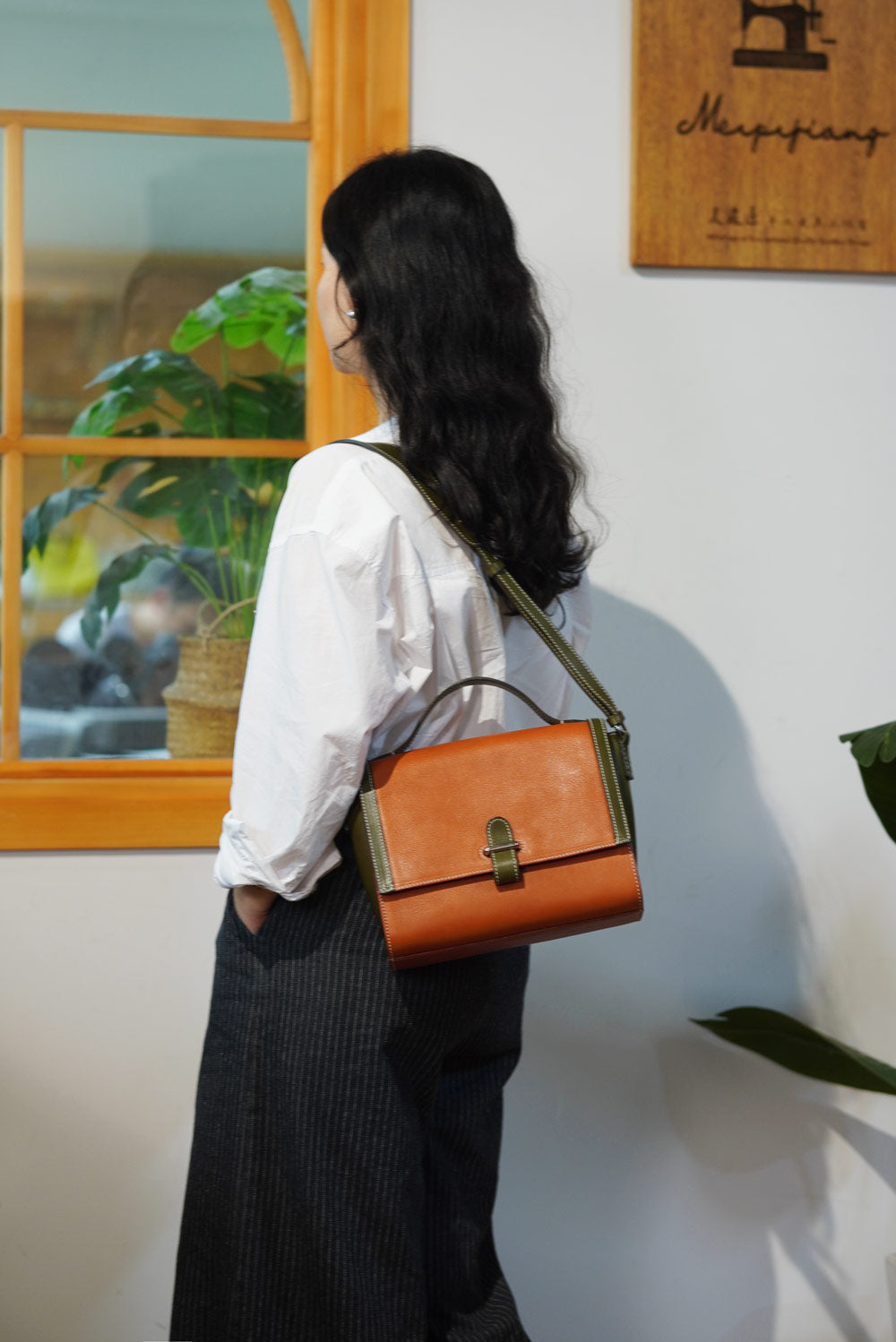 Made from vegetable-tanned leather with a timeless feel, this bag is Briefcase will become more lustrous with time. Treated with special techniques, the leather surface features natural and irregular textures, signifying traces of time. utilizing a jewelry-grade vacuum-electroplated manufacturing process that imparts a vintage feel. The buckles open and close in a second, offering convenience and security.